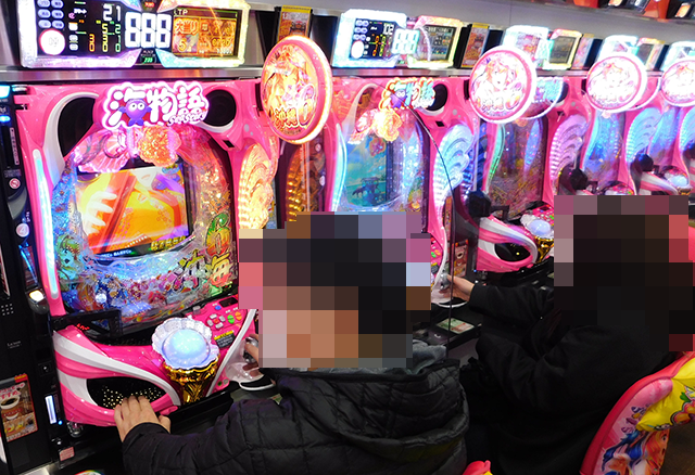 「Pスーパー海物語IN沖縄6」もにぎわいが大きく、プレイヤーたちはうれしそうに遊技中。