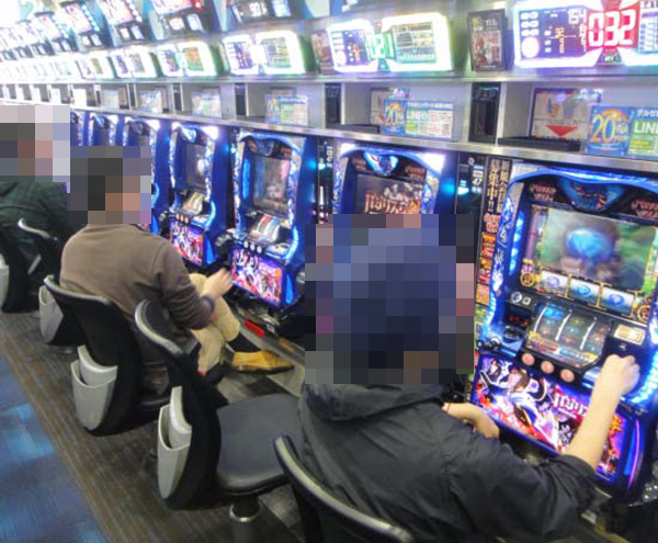 各台計数機が設けられ、持ち玉はデータカウンターに表示されている。夕方ごろに目を向けてみると、多くのプレイヤーが持ち玉で遊技をおこなっていることがわかった。