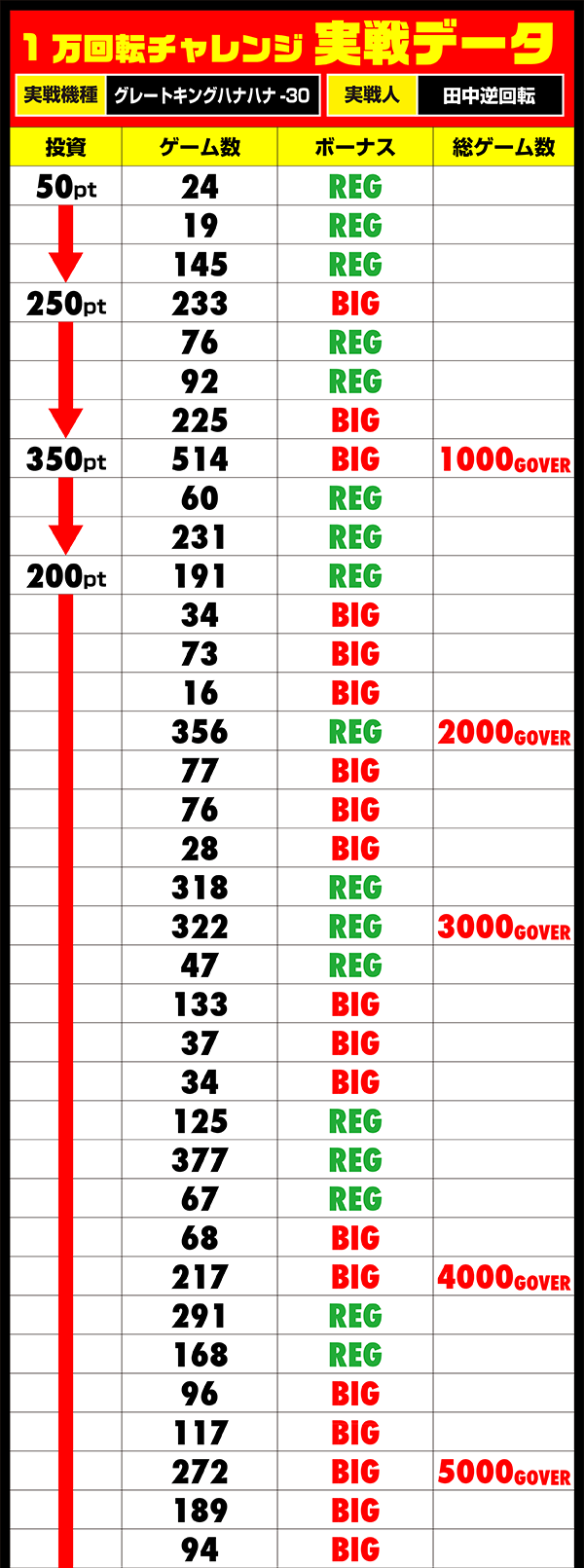 残り1000Gをきったあとも気をゆるめずに、最後まで力いっぱいレバーを叩いた結果は…。1万回転達成&勝利といった最高のかたちでフィニッシュ!!