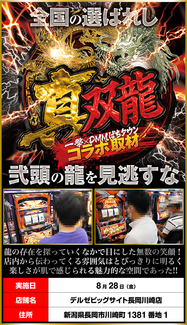 「ハナハナ鳳凰-30」をはじめ、多数の機種に笑顔をみせる姿があった「デルゼビッグサイト長岡川崎店」。