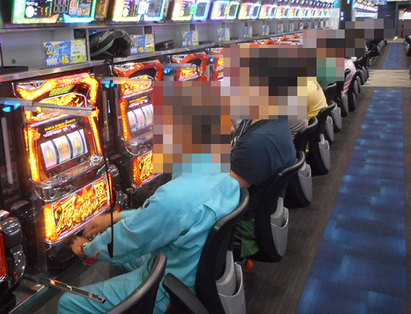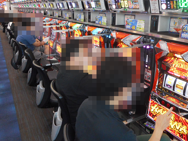 「プレミアムハナハナ‐30」と「ハナハナ鳳凰-30」の両方に笑顔で遊技をおこなっている姿があり、「男の華道」と呼ぶにふさわしい華やかな光景もみられた。
