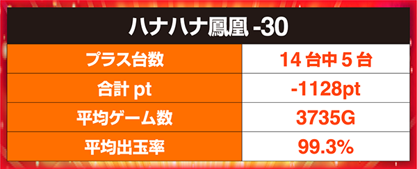 2位以降を独占した「プレミアムハナハナ‐30」も3台が60回を超えるなど、接戦のランキングとなった。