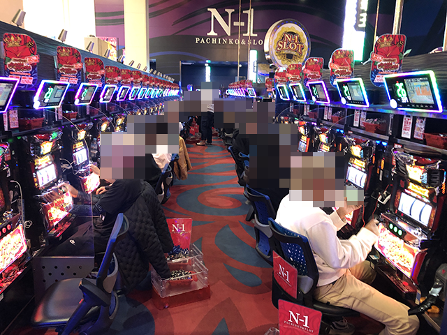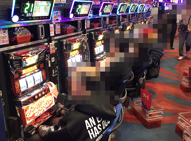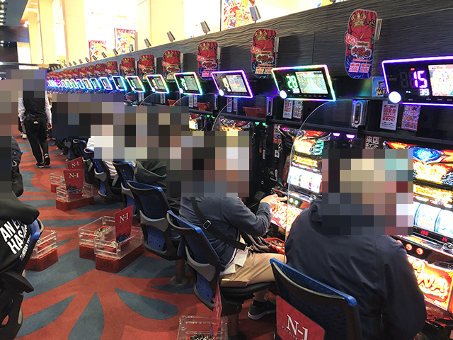 14時頃には、ほとんどの台が埋まるほどに人気があり、20回以上のボーナスに当選している台があちこちにあった。