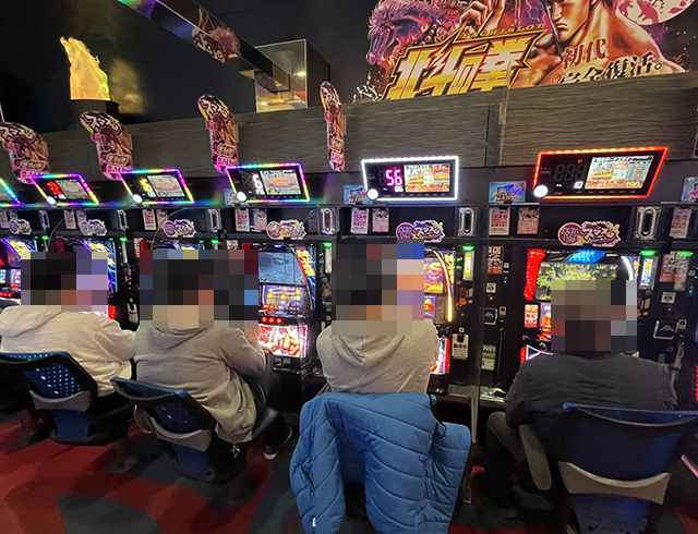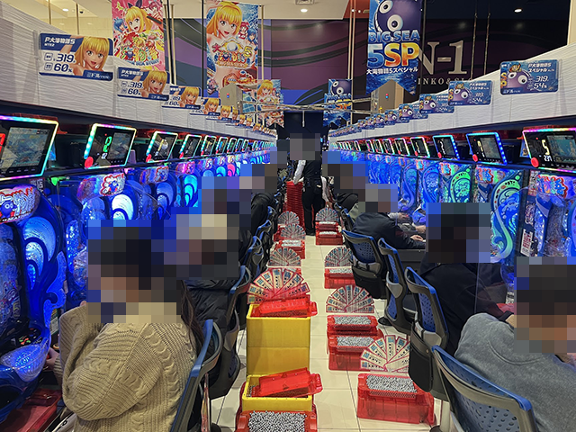 午後の早い時間帯にもかかわらず、パチンコもパチスロもたくさんのプレイヤーでにぎわっていた。