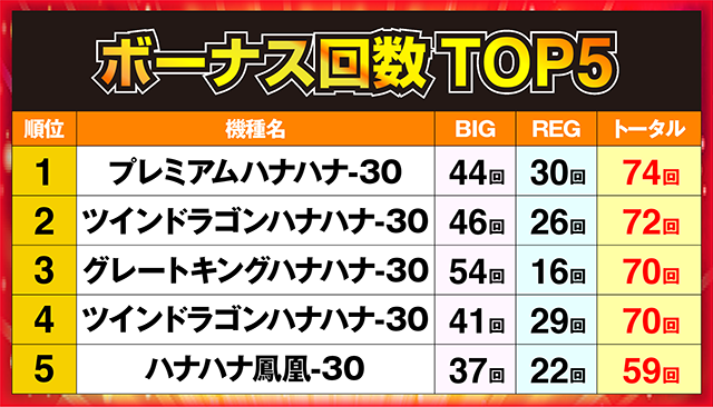 5台中4台がボーナス回数70回以上というハイレベルなTOP5!