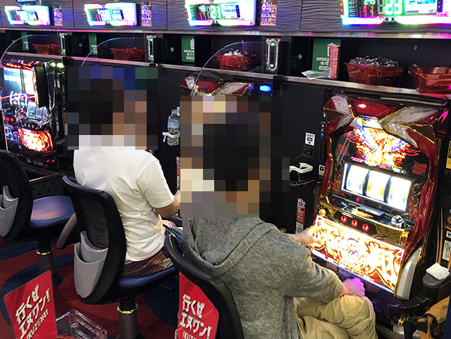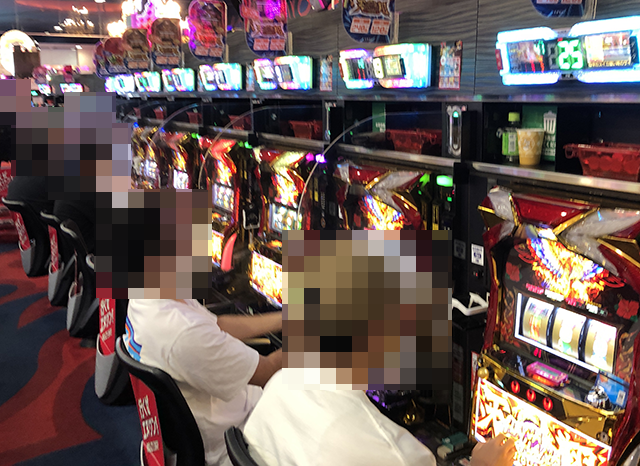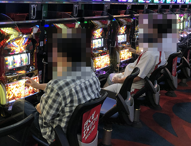 とくに、「ハナハナホウオウ~天翔~-30」で遊技を楽しんでいるプレイヤーが存在感アリ。