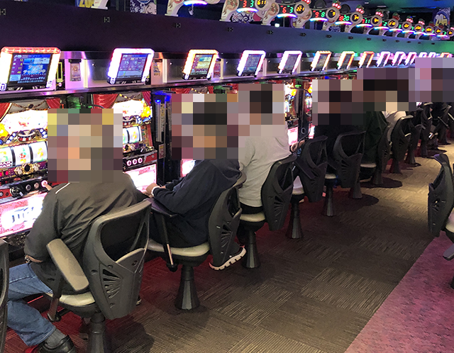 9台が満席となっており、楽しそうに遊技をおこなうプレイヤーがズラリと並んでいたわ。