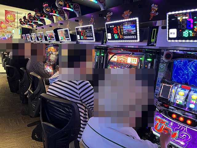 取材時のパチスロでは、「L 東京喰種」に5,000pt超、「L ダーリン・イン・ザ・フランキス」に9,000pt超の台があった。