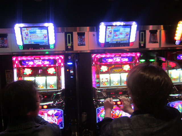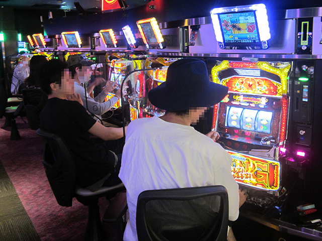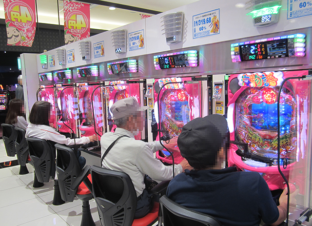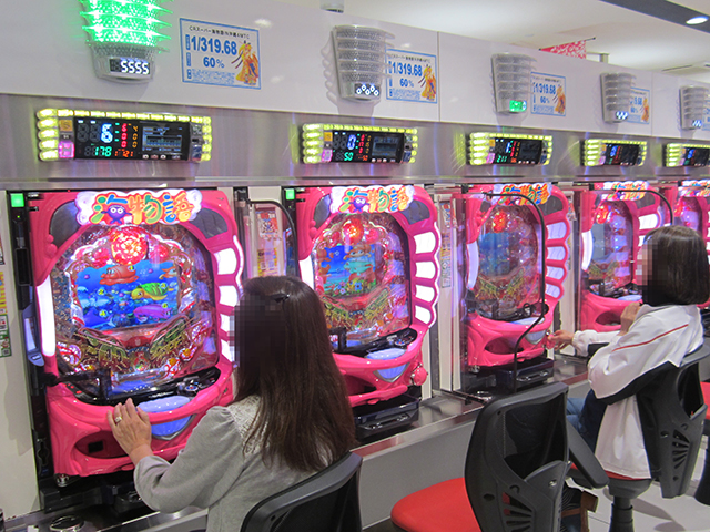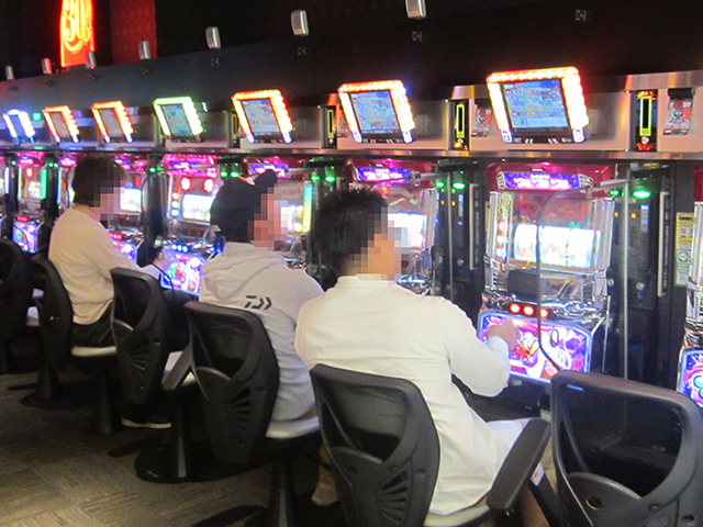 シマ内には女性パチンカーの姿も見られ、おなじみの予告&リーチアクションに見入っていた様子。