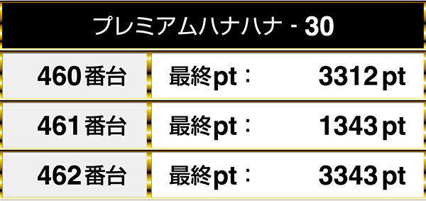 『プレミアムハナハナ‐30』には3312pt、1343pt、3343ptが並ぶ!!