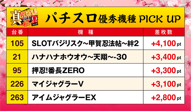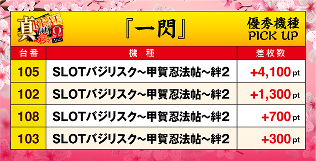 105番台は+4,100ptを記録、機種トータルでもプラスとなった。