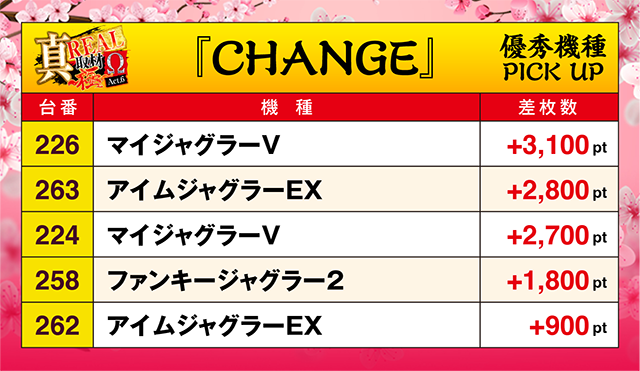設置されている4台すべてがプラスとなり、1台は+3,000ptを上回った。