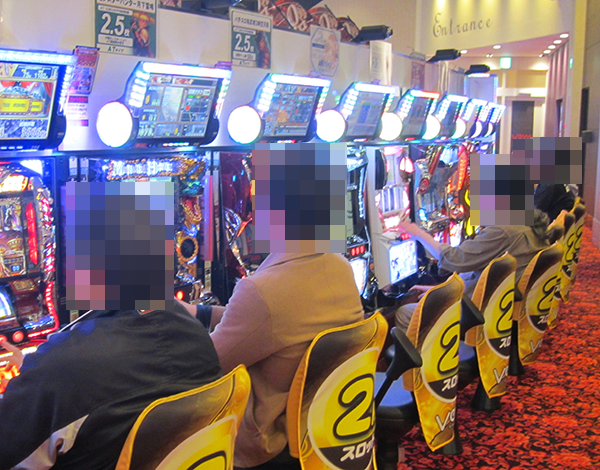 低貸し玉コーナーも大勢の人でにぎわっていた。