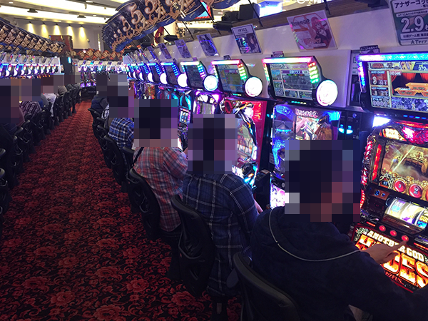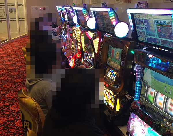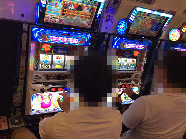午後になると、20円パチスロでは「バジリスク~甲賀忍法帖~絆」にくわえ、「南国物語」がフル稼働と盛況。プレイヤーは満面の笑み浮かべており、楽しいひと時を過ごせているようにみえた。
