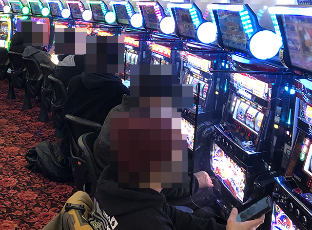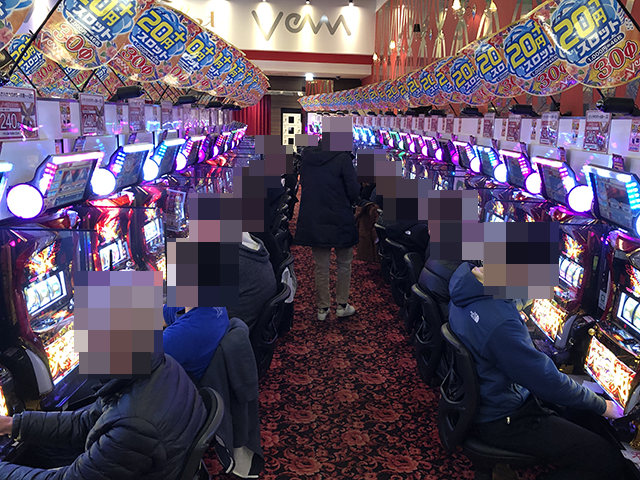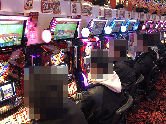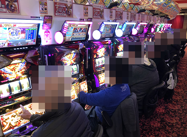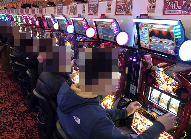 設置台数はホールで最多の31台であり、15時半頃は8割ほどが埋まっていた。
