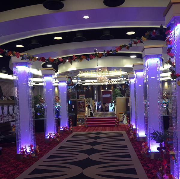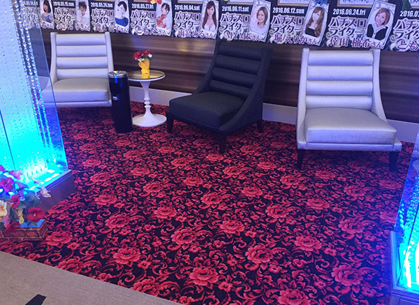 ホール内の内装はこだわりが感じられ、フロアに敷かれている赤いじゅうたんやきらびやかな装飾などにより、高級感あふれる空間となっている。照明も落ち着いた明るさに設定してあり、パチスロ専門店ならではといった快適な遊技環境が用意されているように感じられた。