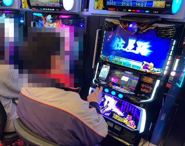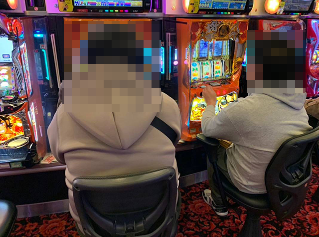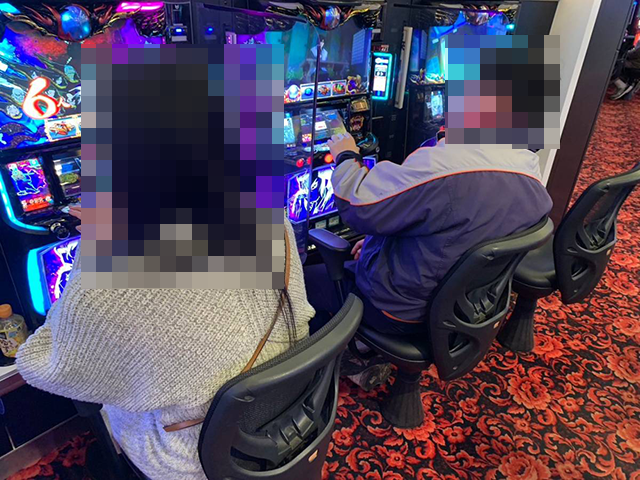 取材時には2名が座っており、どちらのプレイヤーも持ち玉を使って遊技中!