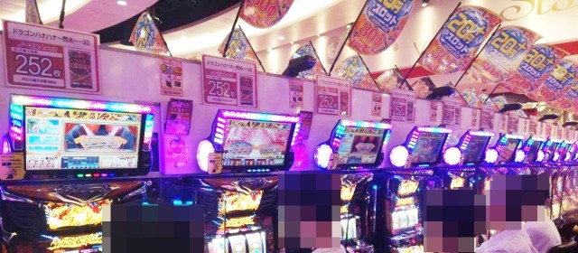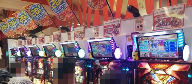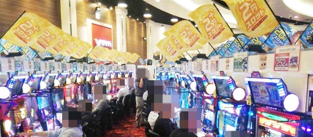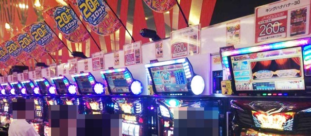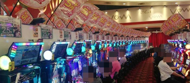 ここまでは[1000円/46枚]スロコーナーをチェックしてきたが、この項に掲載した写真の通り[1000円/178枚]&[1000円/445枚]スロコーナーでもファンはギッシリ、好調台も窺えた。