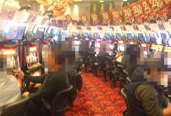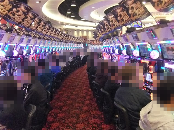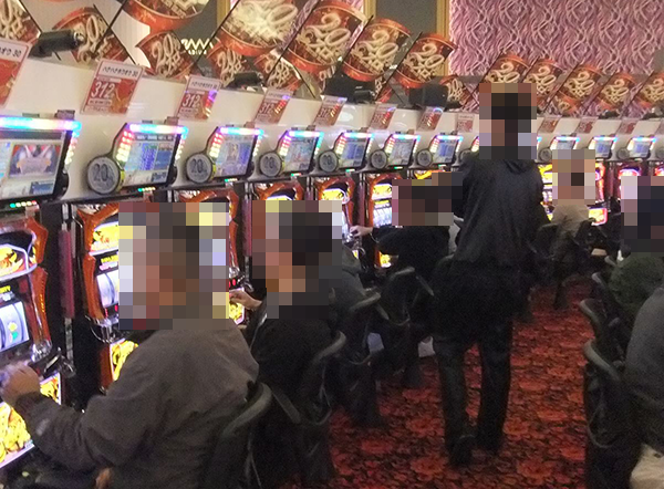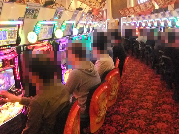 5円パチスロや2円パチスロといった低貸し玉コーナーもほぼ満席。