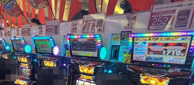 冒頭に掲載した写真の通り、表示出玉で6千枚を突破したのを皮切りに多くの好調台を生み出した『沖ドキ!GOLD-30』に加え、『ドラゴンハナハナ~閃光~ 30』『ハナハナホウオウ~天翔~-30』『キングハナハナ-30』の頭上にもドル箱が浮かんでいた。