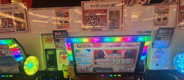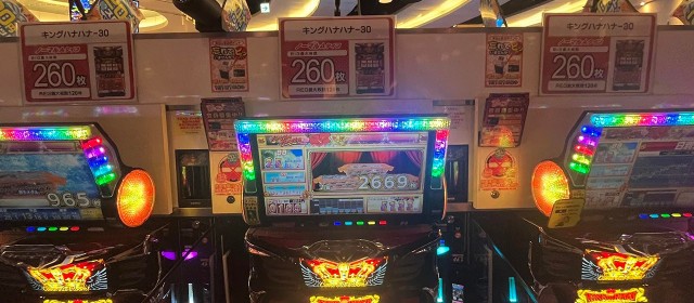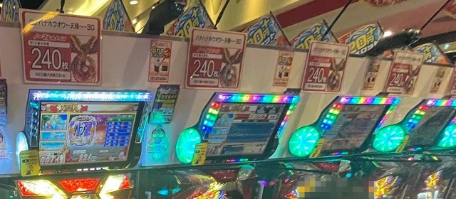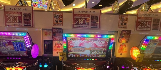 最もドル箱量が多かった『キングハナハナ-30』を筆頭に、『ドラゴンハナハナ~閃光~ 30』『沖ドキ!BLACK』『沖ドキ!GOLD-30』『ハナハナホウオウ~天翔~-30』と、どの機種も華々しい数字が並んでいた。
