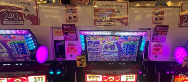『ジャグラーガールズSS』『ハッピージャグラーVⅢ』『ゴーゴージャグラー3』『マイジャグラーⅤ』『ファンキージャグラー2』と、どの機種を見ても「ジャグ連」やドル箱表示が躍っていた。