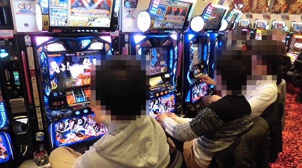 明るい雰囲気が広がるシマのなかで、笑みを浮かべながら遊技を楽しんでいた。