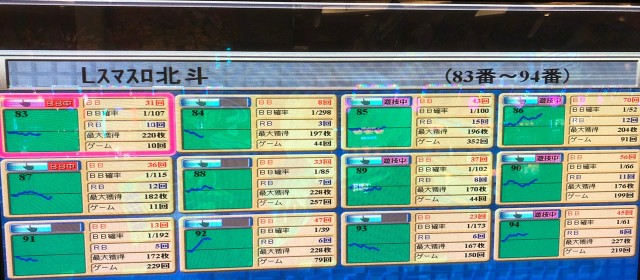冒頭に挙げた黄金に輝くドル箱表示の『スマスロ北斗の拳』『L ゴジラ対エヴァンゲリオン』を皮切りに、『パチスロ かぐや様は告らせたい』『L主役は銭形4』『Lゴブリンスレイヤー』『パチスロ からくりサーカス』『スマスロ ゴッドイーター リザレクション』と、台数多めの主軸機種からバラエティー構成のマシンまで、大量獲得が度重なった。