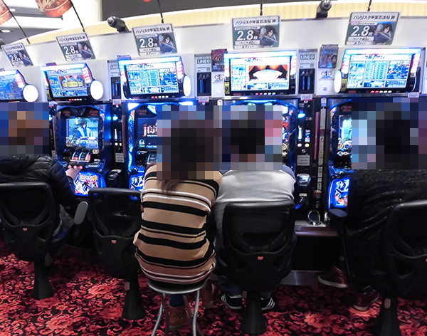 「バジリスク~甲賀忍法帖~絆」が活気づいており、遊技を楽しむプレイヤーの表情は龍の姿が重なってみえるほどに明るかった。