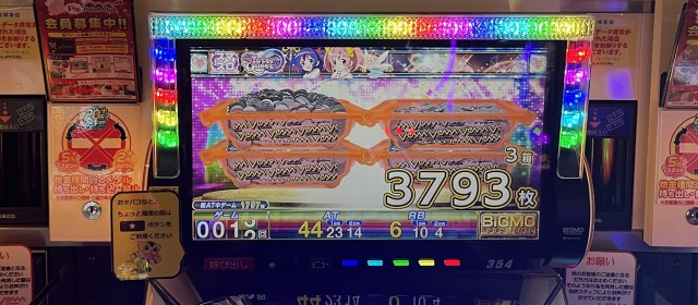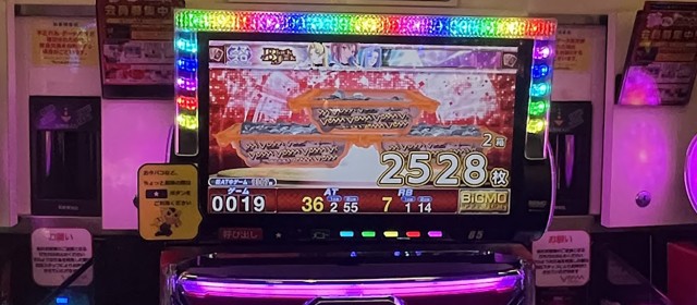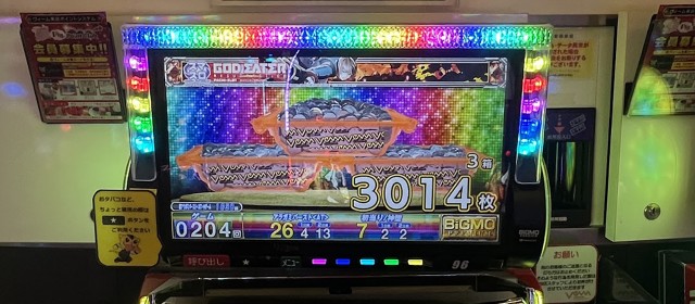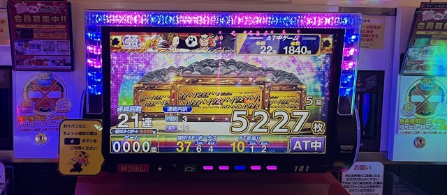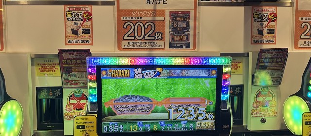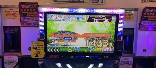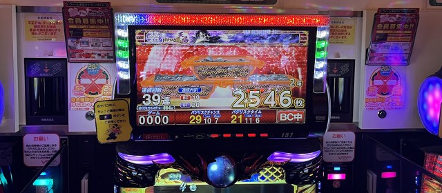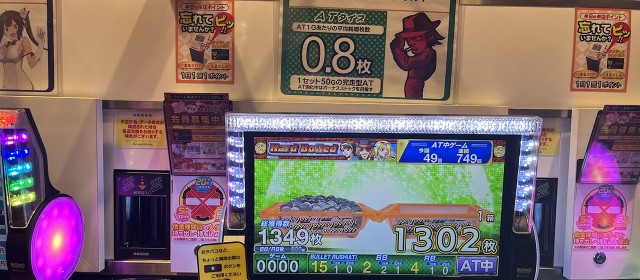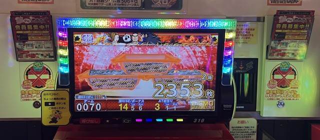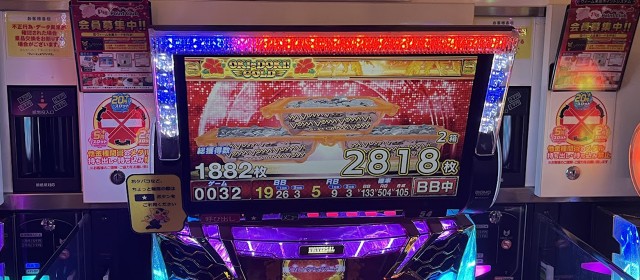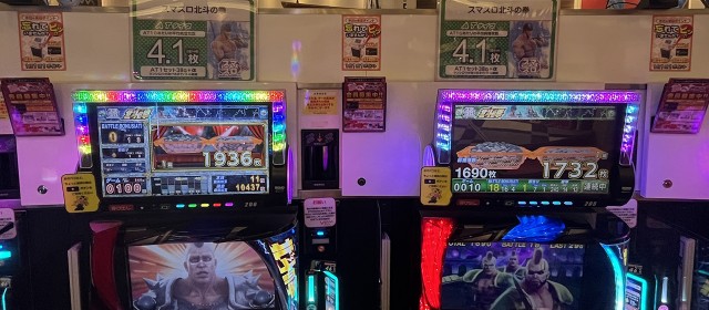 まず向かったのはスマスロコーナー。冒頭に掲載した『押忍!番長4』と合わせて、台上カウンターにドル箱が数多く映し出されていた。