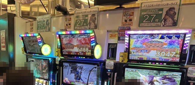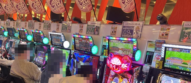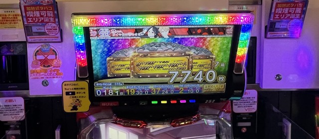 なお直前に挙げた写真でも分かる様に、[1000円/178枚][1000円/445枚]といった低貸しコーナーに多くのファンが群がり、中には順調に出玉を伸ばす台も認められた。