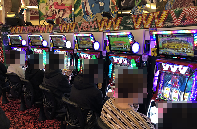 15時半の段階で満台となっていた「パチスロ 革命機ヴァルヴレイヴ」。