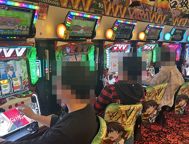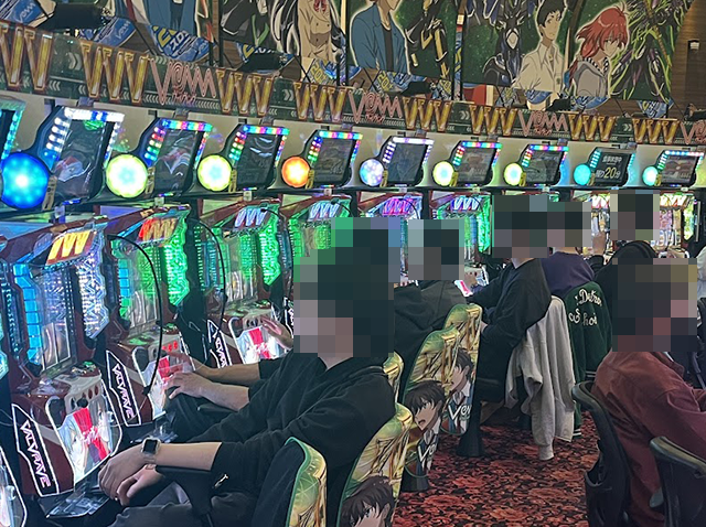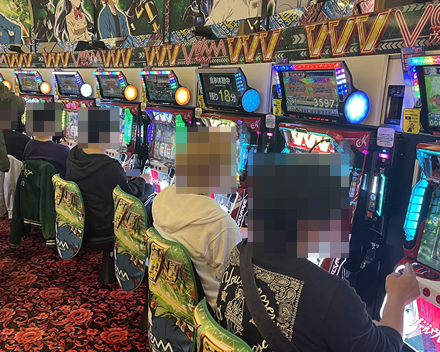 15時半にさしかかる頃の「パチスロ 革命機ヴァルヴレイヴ」は高稼働となっており、大勢のプレイヤーでにぎわっていた。