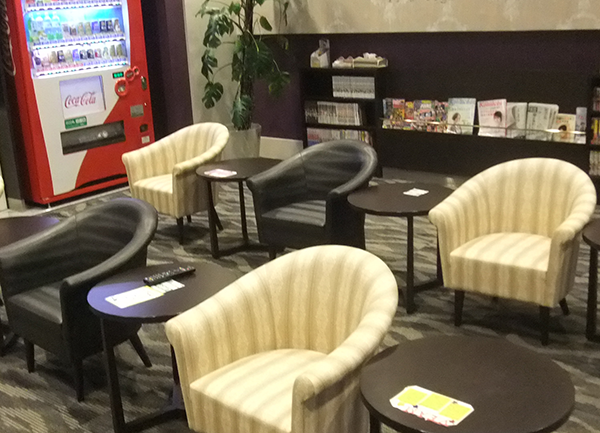 落ち着いた雰囲気のレストコーナーには漫画本や雑誌、テレビなどが用意されている。居心地もよいため、プレイヤーたちはゆったりとくつろげていたことだろう。