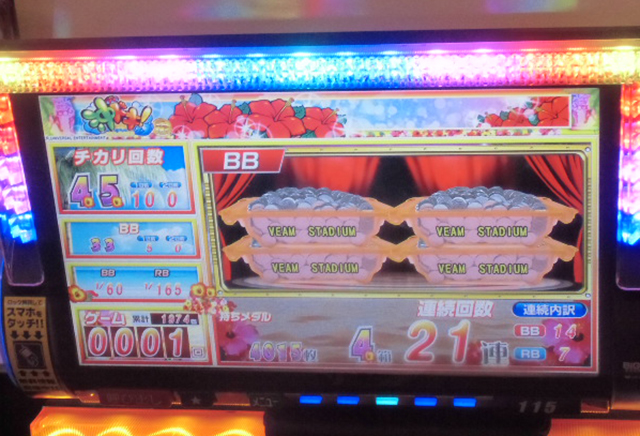沖ドキ!では21連チャン、