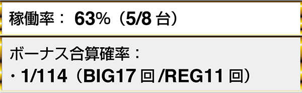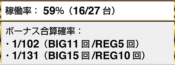 『ハナハナ鳳凰-30』や『ツインドラゴンハナハナ‐30』においては、ボーナス合算確率が1/120を上回っているデータを目にしている。