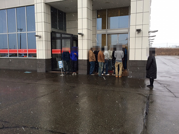 取材当日の朝は雪が降るほど寒かったが、それでも約50名が開店前に集まっていた。