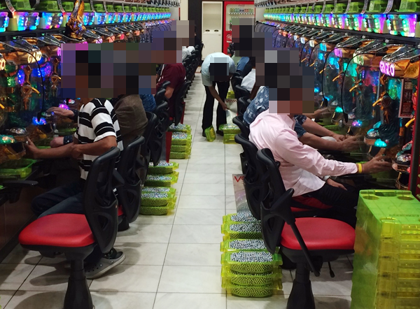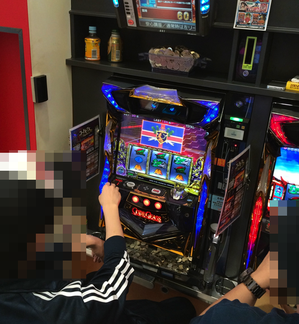昼以降の様子をみてみると、20円パチスロでは「バジリスク〜甲賀忍法帖〜絆」や「パチスロコードギアス反逆のルルーシュR2」が大きな盛り上がりをみせており、楽しそうな笑顔を浮かべるプレイヤーが多数。