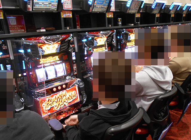 パチスロをみると、「キングハナハナ-30」に活気のある光景が広がっていた。