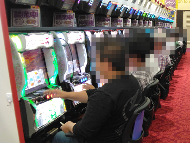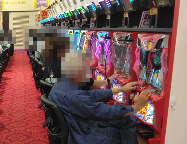 持ち玉を使い、うれしそうに遊技をおこなっていた。