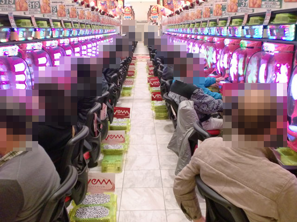 4円パチンコの「CRスーパー海物語IN沖縄4」などでも、遊技をはじめる姿が多かった。