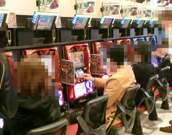 14時頃の20円パチスロでは、「沖ドキ!-30」やハナハナシリーズといった沖スロが盛況。シンプルなおもしろさを味わっている様子のプレイヤーもおり、満足度の高さがうかがえた。