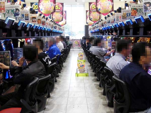 「押忍!番長3」や「バジリスク~甲賀忍法帖~絆」などが高稼動状態となっており、プレイヤーは期待に胸を膨らませ、遊技を楽しんでいる様子だった。