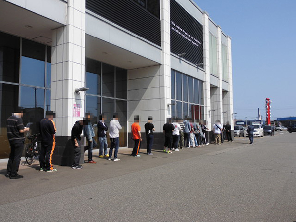 開店前からたくさんのプレイヤーが並んでいる行列を発見。表情を見ると、期待に胸を高鳴らせているといった様子だった。