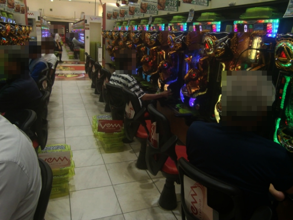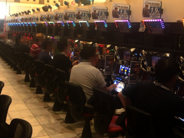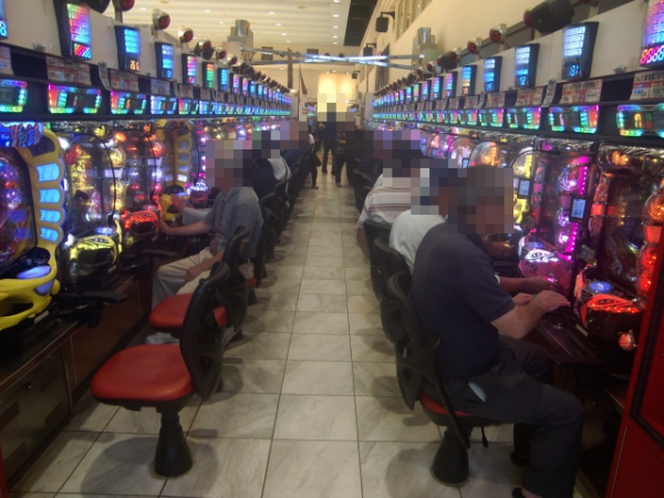 1円パチンコでも海物語シリーズの人気は根強く、老若男女が楽しそうに遊技する姿があった。