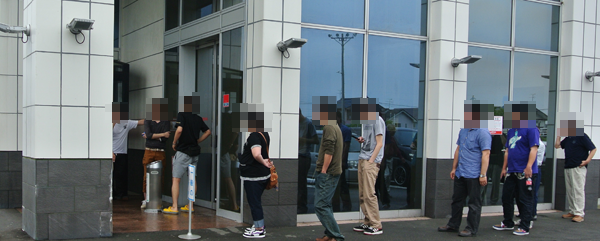 朝イチは入場抽選を行い、この日は約40名のプレイヤーが集合。一般入場の列に並ぶプレイヤーも多く、開店前から大きな賑わいを見せていた。