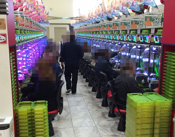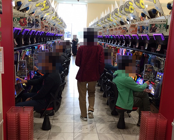 4円パチンコは新台の「CR牙狼 魔戒ノ花」が満席という盛況ぶり。