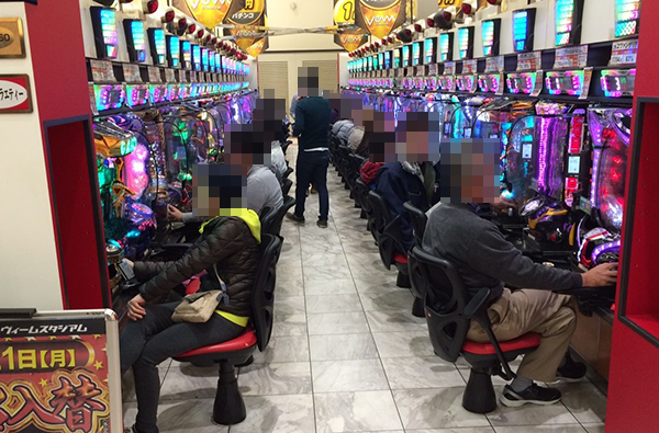 性別や年齢を問わず、幅広いプレイヤーが遊技を楽しんでおり、シマ一帯に鮮やかな光景が広がっていた。