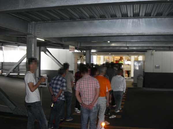 朝の並びには、およそ80名のプレイヤーが集合。スタッフの元気良い挨拶に迎えられての入店となった。