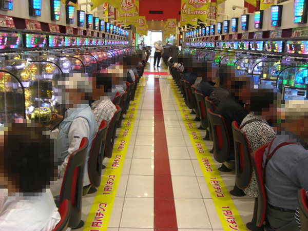 1円パチンコも大好評。特に海物語シリーズは空き台が見当たらないほど人気のようだ。じっくりと機種の魅力を味わうプレイヤーたちの笑顔が、シマの随所に広がっていた。